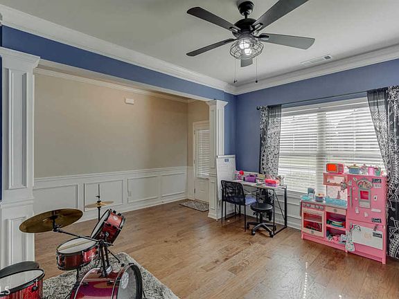 Fantastic home in the swim/tennis community of Riverstone Park! "Conner II" Plan features study or formal dining on the main. Huge family room with a fireplace and coffered ceiling open to bright kitchen with a huge island, stainless steel apliances and large breakfast room. This plan features a "Drop Zone" when you come in from the garage. Upstairs features large owner's suite with vaulted ceiling and ensuite features seperate tub and shower, double vanity and huge walk-in closet. Three very large secondary bedrooms and a large secondary bathroom. Huge backyard and walking distance to the community playground and pool. This one won't last!