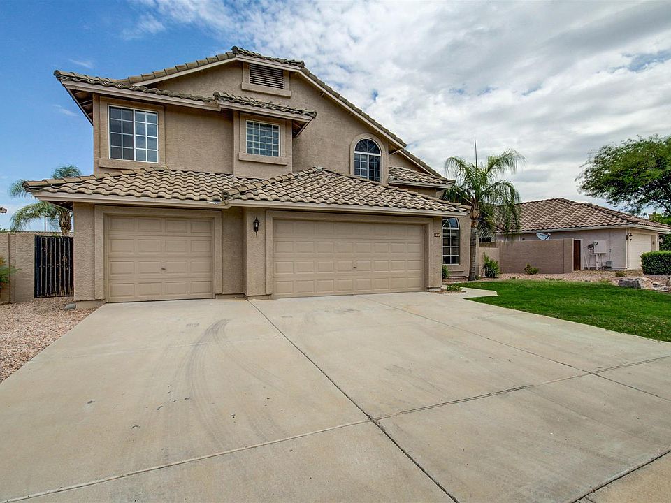 Completely updated 4 bedroom 3 bath home in popular Red Mountain Ranch. Updates include 20x20 porcelain tile, granite countertops, updated cabinets, travertine showers, brand new upgraded carpet and pad, updated fixtures and fans in each room, new paint and much more. Dual pane windows with beautiful plantation shutters. Large master walk-in closet and master bath with separate tub and walk-in shower. Unique laundry shoot on 2nd floor. Nicely landscaped backyard with pebble tech pool and patio with misting system. 3 car garage. North/South exposure. Fabulous home. This one won’t last long.