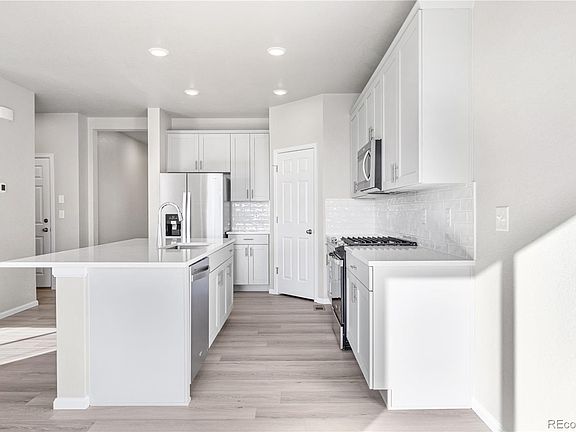 Discover the perfect blend of modern design and comfortable living in this expansive 2,661 sqft Snowberry floorplan home, nestled in the new Ridgeline Vista community in Brighton, Colorado. With 4 bedrooms, 3 bathrooms, and a 2-car garage, this home offers plenty of room to meet your needs. The main level features a versatile flex space/office and a guest bedroom conveniently located near the downstairs bathroom, which is equipped with a shower. The heart of the home is the open-concept kitchen and living area, boasting new stone countertops, a custom backsplash, and modern appliances. Perfect for gatherings or cozying up for a movie night. Upstairs, you'll find a spacious loft, the primary bedroom with a 5-piece ensuite bath, and an oversized walk-in closet, two additional bedrooms, and the laundry room for added convenience. This home is located just minutes from King Soopers Marketplace and Prairie Center, offering easy access to shopping, dining, and entertainment. Plus, with quick access to Hwy 76, commuting to DIA or downtown Denver is a breeze. Don't miss this opportunity to own a home that offers both style and functionality in a vibrant, growing community. Schedule your showing today! Information provided herein is from sources deemed reliable but not guaranteed and is provided without the intention that any buyer rely upon it. Listing Broker takes no responsibility for its