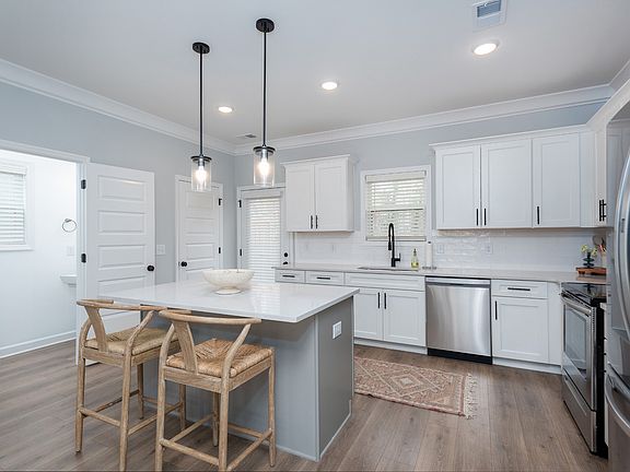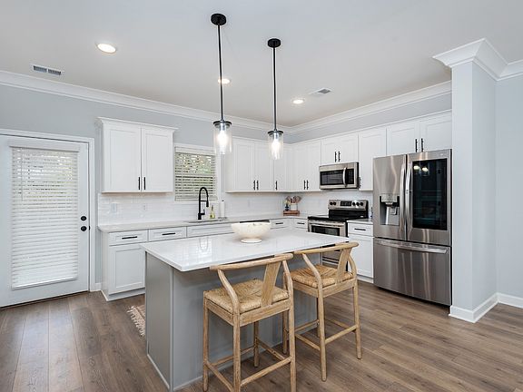 Less than 2 years old and extremely well maintained with all the bells and whistles! All hardwood floors throughout the ENTIRE home and a private semi-fenced patio. The kitchen offers a large island, tons of countertop space, and beautiful backsplash. All bedrooms are upstairs along with the laundry room. You must see the spacious owner's suite including a walk in closet and grand bathroom with double sinks on granite counters and a tiled shower! The neighborhood offers a dog park and playhouse right across the street, a beautiful clubhouse AND pool, and lake views less than a minute walk away!