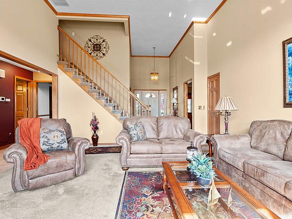 Custom built by Liechty Homes, this one owner home will impress you from the moment you arrive. Quality materials and attention to detail are apparent throughout this lovely home and this floor plan has something for everyone. This home sits on a gorgeous pond lot in Coves of Chandlers Landing with pond views from all of the east facing windows. The13 foot ceilings allow natural light to flow into the home. This 4 bedroom 2 full and 2 half bath home comes with a 3 car garage and luscious landscaping. The finished daylight basement includes a custom wet bar, an office/craft area, a large living area and another large unfinished room that could be made into a fifth bedroom. The main level has everything you need. The living room has a 2-way fireplace, crown molding, large windows and 13 foot ceilings allowing the sun to spill in. The main level master bedroom is an en suite master with an impressive walk-in closet, a dual sink comfort height vanity and a trey ceiling. The spacious kitchen has custom wood cabinets, a walk-in pantry, offers stunning views from the kitchen sink, and the eat-in dining area features a 2-way fireplace and a deck off the kitchen area. A formal dining room, laundry room and a half bath complete the main level. There is plenty of room to relax outdoors on the covered front porch or out back on the deck. Not only does this home check all the boxes of needs and wants in a home, it is sure to impress you throughout. It is evident that this one owner home was immaculately maintained. Offers must be contingent upon seller finding suitable housing.