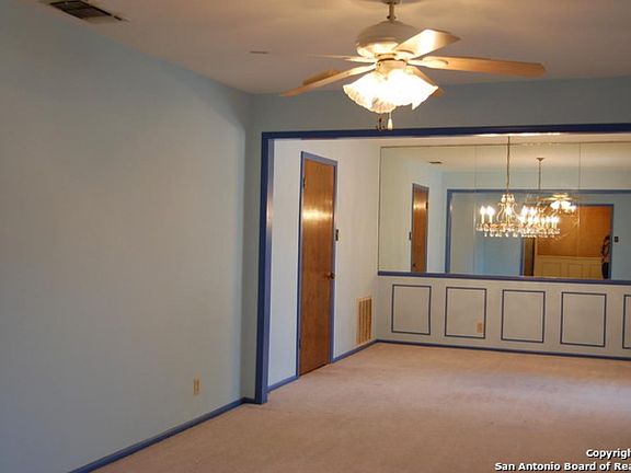 BEAUTIFUL LOCATION - Spacious (approx. 2478 SF) 4BR, 3BA home on cul-de-sac lot overlooking this lovely neighborhood. Double living and dining areas, exercise room with hot tub off master BR, vaulted ceiling and skylite in family room, covered patio - well located family home convenient to Ft Sam, Randolph AFB and Rackspace.