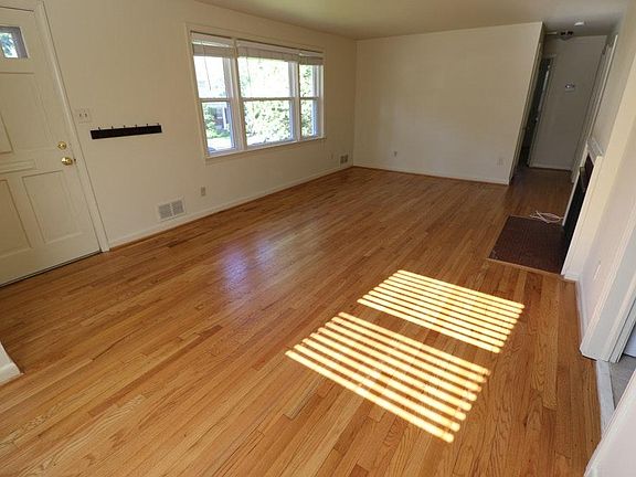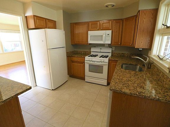 All brick rambler on a quiet street with a large yard. 4 bedrooms, 2 baths (1 recently added, 1 recently renovated). Renovated kitchen - granite counters, cabinets, appliances and tile floor. Entry level has 3 bedrooms (13 X 10, 11 X 10, 11 X 10), full bath, living/dining room (23 X 13) with fireplace and a kitchen with eat-in area. Lower level has a bedroom (12 X 11), recently added bathroom, laundry room and a (28 X 16) paneled recreation room. Refinished oak floors on the first floor and carpet on the lower level. Recently painted. All new windows throughout entry level. Central AC, gas heat and appliances. Large screened-in porch. Tenant responsible for all utilities: electric, gas, water, trash, phone, cable and internet.