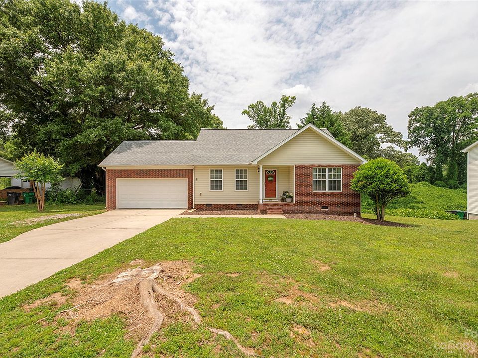 WELCOME HOME! Lovely ranch home with 3-bed, 2-bath, 1159 sq ft, .43 acre lot, NO HOA, & ample parking! Close to shopping, dining, & uptown Charlotte! Step inside & enjoy HARDWOOD FLOORS in the spacious living room & primary bedroom! Through the spacious living room find the kitchen & notice brand NEW tile floors, NEW countertops, contrasting slate gray & white cabinets PLUS potential to add a custom kitchen island for extra cooking space! In the kitchen you'll find a pantry, door to the 2-car garage, & a serene RAISED BACK DECK with private view! Head back inside to the right half of the home to find all 3 beds, laundry room, & 2 full bathrooms! Secondary bathroom offers NEW tile, newly painted cabinets, & a shower/tub combo. Secondary bedrooms offer ceiling fans, double door closets & NEW carpet!. Primary bedroom features NEW HARDWOOD FLOORS, TWO CLOSETS (great storage), & a tray ceiling for a custom touch! Primary bathroom has NEW tile, newly painted cabinets, and shower/tub combo!