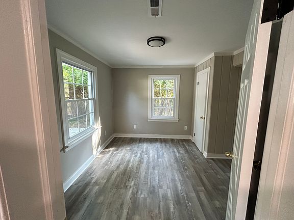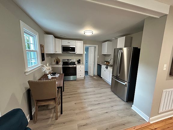 Totally Renovated! One-Story Living! Nice living room with refinished hardwood floors and recessed lighting; large eat-in Kitchen with new cabinets, countertops, stainless steel appliances, and new LVP flooring, Primary Bedroom with refinished Hardwood Floors and freshly painted, Second bedroom freshly painted with refinished hardwood flooring, third bedroom with new LVP flooring; bath that is completely remodeled. Home has all new fixtures throughout, new windows, new roof, new siding, and new HVAC. Large back yard for play or relaxation. All utilities are the responsibility of the Tenant.