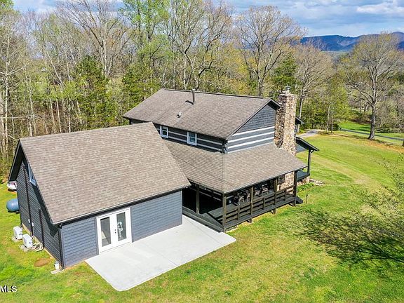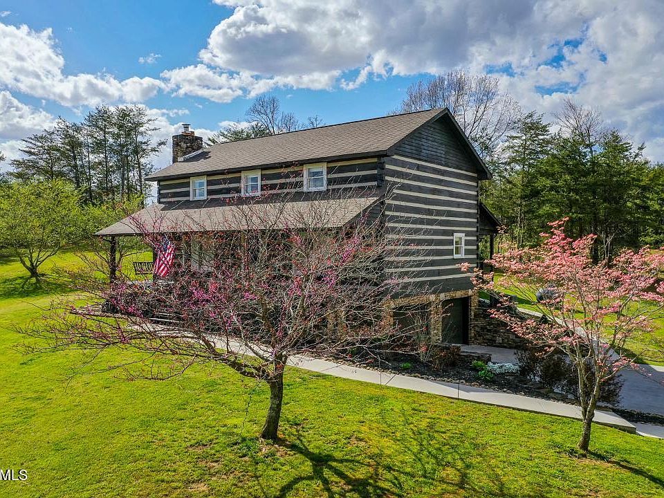 Give a dog a home! This custom-built log farmhouse has a beautiful mountain view and is situated on 5 acres in a small, private community of upscale homes. Features tongue and groove/beam ceiling, beaded board interior walls, stacked stone fireplace, antique claw foot tubs in both full baths. The covered front and back porches and grilling patio offer excellent space for outdoor entertaining. Your friends can have some privacy in the detached 1 bed/1 bath guest house (sq. ft included with main listing) and there is plenty of room for projects and storage in the barn. Bring your family and leave everything else behind. The main house is offered fully furnished. Showings begin 04/18/2022