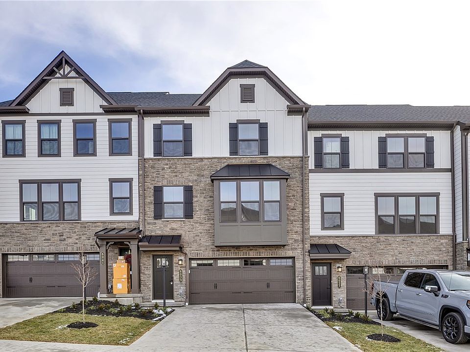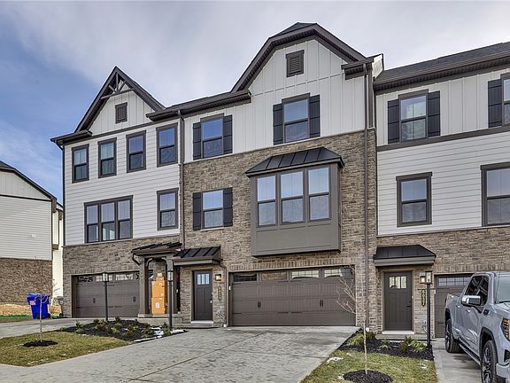 Stunning brand new construction never lived in townhome with tons of updates such as high ceilings, fans in every bedroom, beautiful hardwood stairs, railings, blinds, etc. Main level has a welcoming living room, kitchen which features a 10' quartz-topped island & counters, upgraded 42" upper cabinets, soft close drawers & pull-out storage, and stainless steel appliance suite. Entertain in the spacious dining room or the upgraded kitchen. A large living room area w/half bath off and tucked away den is perfect for a home office. Upstairs is a convenient laundry area, hallway full bath, and 3 bedrooms including a stunning primary suite w/crown-topped tray ceiling, customized walk in closet, and bath with double vanity & oversized, tiled double walk-in shower. The finished basement offers tons of storage closets w/barn doors, a gameroom/office, and 2 car garage! Close to I-79, I-76, 228 and shopping, entertainment in Cranberry and Mars. Available to rent immediately.