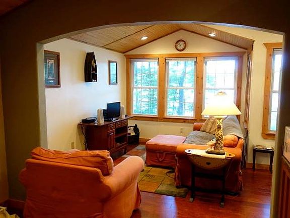 This charming, 3-season cottage offers everything you need for your Northwoods getaway at an affordable price. The main level living has vaulted, bead board ceilings and serene views of Wind Pudding Lake from the living room, sitting room and deck. This cottage provides 2BR, 1BA, main floor laundry, Brazilian cherry engineered hardwood flooring and custom cabinetry along with many upgrades over the years including windows, siding, roofing, electrical and plumbing. Enjoy 110' of frontage with a gentle slope to Wind Pudding Lake and your very own pier. In addition to the large yard, there is a covered boat shelter and solid-oversized 1-car detached garage with extra storage.