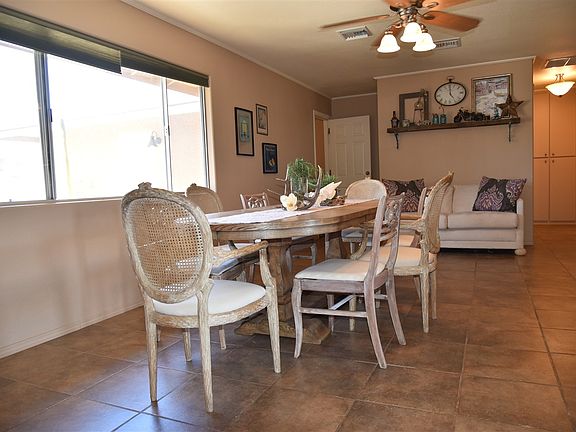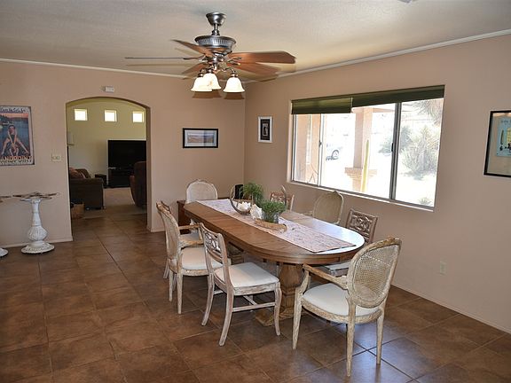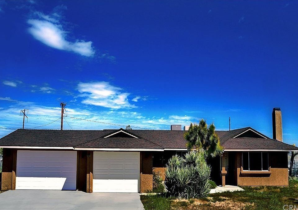 This Great Home is located in South Joshua Tree, just minutes from Palm Springs. This upgraded spacious 3 bedroom, 2 bath home has a bright and open floor plan. The kitchen has maple cabinets with coffee glaze finish, granite counter tops, stainless steel appliances including a side by side refrigerator, a microwave, a built in desk and pantry, and slide out shelving. The island/bar opens to a large dining room, with crown molding in kitchen and dining room. All windows are covered with Levelor Automatic Blinds. The master bathroom has his and her sinks, a walk in tile shower with double shower heads, large separate bathtub and a walk in closet. The step down living room has a large front window facing south with a great view of Joshua Tree National Park and a corner fireplace. – great room. The 3 car garage is finished with automatic openers and includes a built in cabinet and a complete laundry room. The north facing back yard is completely fenced. There is a covered patio off the kitchen and master bedroom which has a northern view of mountains and city lights. Ceiling fans are throughout the house and on the covered patio. Ceramic tile and carpeting are throughout the house. This home is 6 Miles from Joshua National Park, Hiking, Camping, Rock Climbing, with great plants and animals. Situated close to Yucca Valley, 25 Miles from 29 Palms Military Base, 35 miles from Cabazon Outlets and 45 miles from Beaumont CA. This is a Must See!
