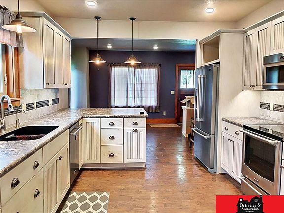 So many updates in this 4 bedroom, 2 bath home with the highlight being the beautiful totally remodeled kitchen. Kitchen features stainless steel appliances, ceramic tile accent wall, tile backsplash! Many new windows throughout, spacious walk in closets in bedrooms, tankless water heater, lots of updates to lighting & electrical, newer furnace/AC, fenced backyard, storage shed, detached garage, basement kitchen, main floor laundry. You will love the open floor plan of the main floor which contains a spacious dining room while lots of character of an old home! This home is ready for someone to move in and enjoy! All measurement approx.