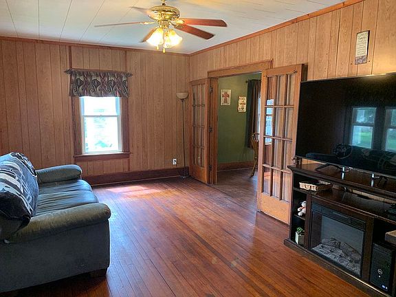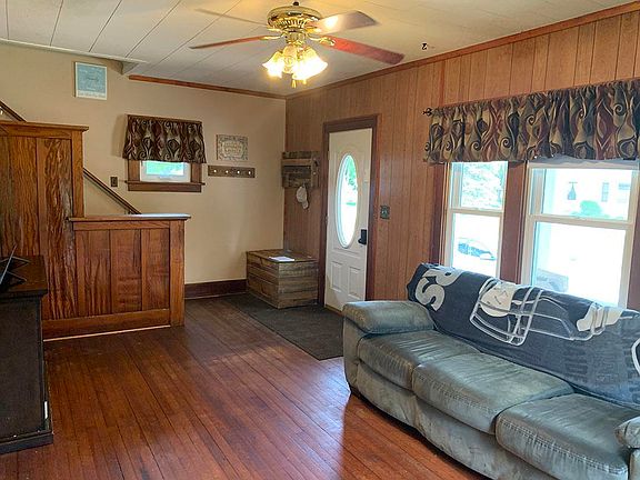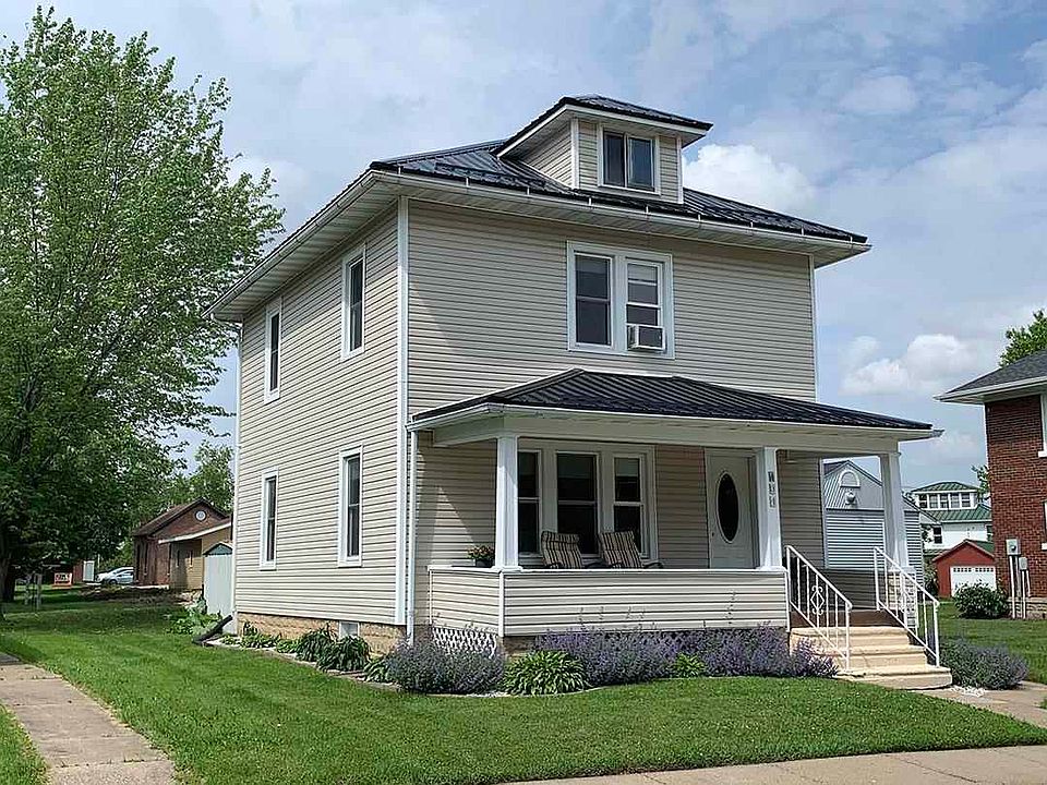 Convenience and character get high marks in this three bedroom home! The main floor boasts a vintage kitchen, formal dining room with French doors and a staircase with original woodwork. Two ample-sized bedrooms are on the second floor, with a third floor finished attic for the third bedroom. Updates include vinyl siding, metal roof, and new windows. Off-street parking on a cement slab accommodates 4 cars or a half-court basketball game. Close to schools and church!