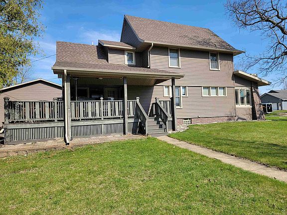 Check out this well-maintained two-story family home on a corner lot located close to the schools, parks, and fitness center! Main floor features an updated kitchen with lots of cupboard space, pantry, and 2 sinks, a dining room, and a large living room with an electric fireplace. Also, a bonus sunroom/office space off of the living room. Beautiful full bathroom with a soaker tub, mudroom, and laundry all on the main floor! Upstairs you will find 3 bedrooms with good closet space and an updated bathroom with a walk-in shower. Unfinished DRY basement for all of your storage needs! You will love walking out of your kitchen to your beautiful, covered deck! Extra bonus to this property is the large new cement patio, driveway, and sidewalk. Two oversized 2 car garages! One garage having heated floors and a 1/2 bathroom making it a great space for entertaining or a workshop. You will have no problems with finding space for all of your vehicles, toys, and tools on this property. Plus, there is additional parking sapce behind the garage with alley access. All appliances to stay with this home! This home is move in ready and is waiting for you to start making your families memories in. You don't want to miss out on this one!