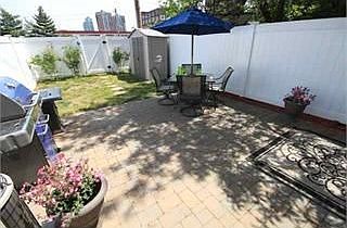 Live the good life in this wonderful two bedroom totally renovated condo. Huge private deeded backyard with amazing skyline views of JerseyCity and Hoboken will be the envy of all your friends when you throw those great BBQ's. The unit has an amazing open layout with wonderful closet space. Stainless Steel appliances will make cooking dinner meals easier. Washer and Dryer in unit. Fabulous hard wood floors and amazing exposed brick walls. Easy walk to Path Trains.