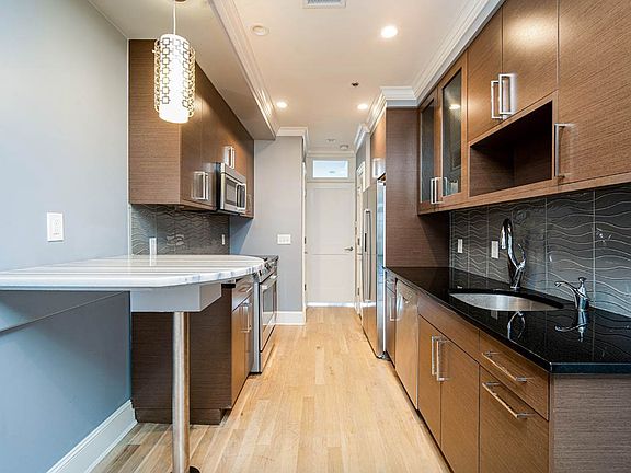 Move into this tastefully designed Adams Street 2 bedroom condo rental. Features: high quality construction, designer kitchen with stainless steel appliances and granite counters, hardwood floors throughout, decorative lighting, small living room area, 2 bedrooms on opposite sides of the apartment, full bathroom with bathtub, central air / heat, washer & dryer in unit, terrace, close to shopping, restaurants, parks, pubs & public transportation. Reach out now for a showing! 10/15 move in. Landlord pays for water and the tenants pay for gas, electric and hot water. Checks due at signing are 1st month rent, 1.5 months security and 1 month brokers fee. Pet fee is $250 non refundable and $25 on top of the monthly rent per pet. Parking available for rent $300 off a garage nearby (500 Jefferson Street, Hoboken).