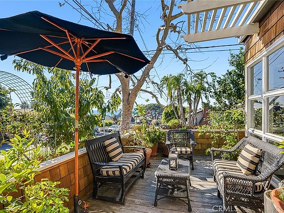 Nestled on a corner lot in the heart of Laguna Beach Village, 604 Anita Street showcases turnkey coastal living at its finest. This charming coastal cottage offers a cleverly thought-out and open floor plan with every inch of the home optimized for comfort and style. The home has beautiful views that can be savored from various vantage points throughout the home - the exterior deck, lower level living room, and the master bedroom with both interior and exterior perspectives. Upon entering through the charming front dutch door, you will notice that the lower level is designed for both openness and warmth, featuring an updated kitchen with custom white cabinetry, an oversized island and top of the line appliances. The kitchen opens into the family room anchored by a gas and wood-burning fireplace. A custom retractable barn door cleverly conceals the TV in the living room. Venture around to the other side of the lower level and find the tucked away, private main level bedroom. The first bedroom on the lower level opens up to the patio, offering a retreat-like experience. The spacious wraparound deck and private side yard are both inviting spaces for entertaining or simply unwinding. The upper level hosts the primary suite with beautiful vaulted ceilings and an ocean-view deck, providing an ideal spot for relaxation. The luxurious bathroom boasts a steam shower with an attached soaking tub, custom blue tilework, double sinks, and the luxury of heated flooring. Additional features include a laundry room, attached garage, solar power system that is owned, and a newly remodeled roof. Located on an ideal street in the Village, 604 Anita Street offers easy access to Laguna Beach's renowned dining, shopping, cultural attractions, and stunning beaches. Don't miss the chance to make this centrally located coastal retreat your own.