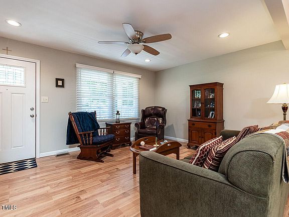 Renovated ranch home on large flat flat lot in quiet Van Story Hills. No HOA or restrictive covenants. Updated Kitchen boasts tons of natural light with skylight above island. Large FR and dining area highlight this open floor-plan that is great for entertaining. 3 spacious BR's with large owners' suite. Both full bathrooms have been tastefully renovated. 4th room/flex space is great for bonus/play-room or for extra storage. Huge multi-level deck overlooks large private backyard backing to wooded area. All new house systems within the past 6 years provides low maintenance living and move-in ready. Exterior painted in 2022. Close proximity to shops, parks and restaurants within a few minutes drive. 9 miles to downtown Raleigh and minutes drive to White Oak shopping centers. Perfect blend of privacy and convenience.
