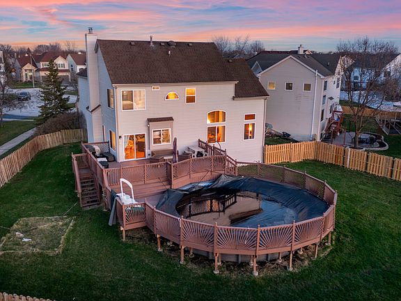 MULTIPLE OFFERS RECEIVED- HIGHEST AND BEST DUE BY MONDAY 4/1 AT 2PM. Welcome to your dream home in the highly sought-after Wildflower subdivision! Nestled one of the largest lots in the neighborhood, this stunning residence is situated on a tranquil cul de sac with picturesque views of the pool & serene pond. This showstopper boasts 4 bedrooms and 2.5 bathrooms, spanning a spacious 3524 sq ft. As you step inside, you'll be greeted by the grandeur of high ceilings in the living room on the first floor. The private office provides a quiet and productive space, while the kitchen is a focal point overlooking the backyard, offering breathtaking views that are truly a feast for the eyes. The primary bedroom is a sanctuary in itself, featuring a full bath with a separate tub and shower, complemented by ample closet space. Three additional bedrooms on the second floor share a well-appointed full bathroom. The full finished basement adds another dimension to this already impressive home, providing a versatile and open space for various activities. Ample storage ensures that everything has its place. Step outside onto the tiered deck to discover the perfect placement of an amazing above-ground pool (2023), creating an oasis where you can relax and unwind while enjoying the captivating views of the pond. With a three-car garage, you'll have plenty of space for vehicles and storage. The fully fenced yard provides privacy and security, making it a great space for outdoor activities. One of the standout features of this property is its ideal location next to the park and a walking trail that winds around the peaceful pond. Imagine the joy of taking leisurely strolls or engaging in outdoor activities right at your doorstep. Don't miss the opportunity to make this exceptional property your own.