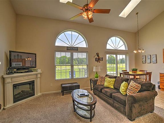 A golfers dream getaway! This beautiful fully furnished condo sits on the 10th fairway. It is currently part of the Oak Terrace rental program and new owner can maintain that. Main level has bedroom, full bathroom and laundry. Kitchen opens to living room with fireplace, cathedral ceilings and golf course view. Upper level features a master bedroom/en suite with jetted tub and balcony that overlooks the living room. This is an end unit condo. Ownership includes access to Oak Terrace amenities including a gym, clubhouse, restaurant and golf.