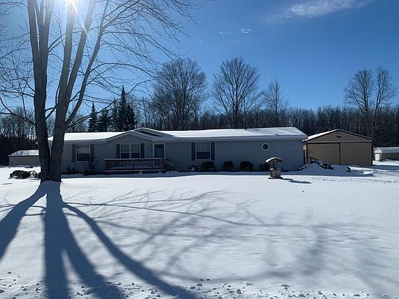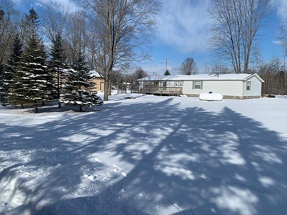 1768 Square foot 3 bedroom 2 full bath on 4 lots with Large Pole building. Home has open floor plan with island, 2 living areas and 2 eat-in dining area. Vaulted ceilings. Main Bedroom has dual closets with private bath, garden tub and stand alone shower. Both 2nd & 3rd bedrooms have walk-in closets. Home is located between 2 streets-Big Oaks and Pine. Home is on 4 Lots including Large Pole Bldg. 2 Decks and Shed. Pole building is 110, cement floors and 2 drive thru doors. Ready to make this home. Just minutes to trails, state land, just over 2 hours to Detroit. Come play in Michigan Winter Wonderland.