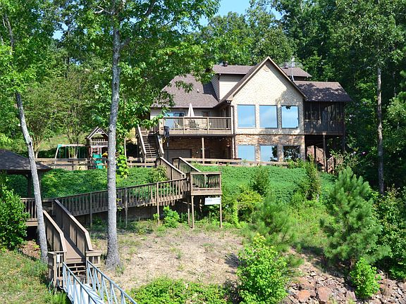 #3444 - Complete privacy with a breathtaking long water view in gated Blue Water Pointe! This 4BR 3 BA Home sits on 3 lots & features a walkout basement, Hardwood Floors, newly updated kitchen with Granite Counters, new Pella windows in the Living Rooms of both levels, Screened porch, open sun deck, large private Master Suite, Kitchens on Both Levels, Leaf-Guard Gutters and a two slip Boat Dock.