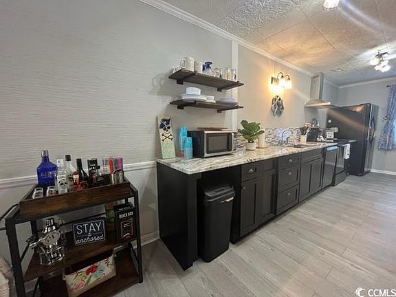 Welcome to this exceptional property nestled on the Eastside of 17, offering the rare advantage of no HOA fees. Renovated in 2023, this one-of-a-kind home exudes charm and functionality, making it a standout in its class. Discover modern updates throughout, including freshly applied paint, brand-new vinyl fencing, and updated LVP floors. The open concept layout downstairs provides ample space for relaxation and entertainment. Step outside onto your private deck overlooking a fenced-in yard, offering ample space to store your golf cart, motorcycle, or trailer. Embrace the coastal lifestyle with easy access to Garden City Pier, just a golf cart ride away. This property truly stands out as a unicorn in the market, offering a rare combination of modern amenities, convenient location, and no HOA restrictions. Don't miss the opportunity to own this unique piece of paradise. Schedule your viewing today and experience the magic of this unicorn property for yourself. Seller is a licensed SC Realtor.