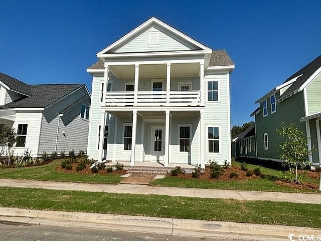 Builder is a Popular Regional Builder in North Carolina/South Carolina markets for over 30 years building Low Country/Coastal Style New Homes. Always paying attention to architectural details. Quality and Customer service is tops with this builder! This Wakefield O plan has lower and upper front porches and a rear porch for outdoor relaxing. Beautiful Low Country Appeal. First floor offers 10 ft. ceilings and 9' on second floor. First floor private office with french doors, Formal dining room, plus Kitchen with island and a 15x9 Breakfast/casual eating area and Gourmet kitchen (gas cooktop). lots of upgrades. Second floor offers 4 bedrooms, 3 baths. (note Bath 2 is a Jack & Jill Bath with two sinks!). Primary Bath has a Separate Tiled Shower with Zero Entry and drop-in separate tub with tile surround. Upper porch can be accessed from bedrooms 3 and 4. Home can close in March/April 2025. Move-in Ready!! We have is staged with furniture/furnishing to buyers can visualize furniture placement. Furniture and furnishing in home does not convey. Timberlake Level 3 Barnett Linen Painted Cabinets throughout the home. The Kitchen offers recessed can lights, pendants over island, cushion close doors and drawers, Quartz Countertops, Backsplash. Natural Gas 36" Cooktop w/vented range hood, Wall oven w/ Microwave above it. Under Mount Single Bowl Kohler White sink All baths and laundry have tiled floors and quartz countertops. More upgrades include can lights in family and primary bedroom, and over tubs/showers., Cased windows, doors/ 5" Cove crown molding on first floor and Mohawk Engineered Hardwood on first floor. Upgraded lighting, plumbing fixtures. NOTE: The large rear covered porch and spacious rear yard allows for outdoor living space for relaxing and entertaining..Could possibly be space for a small pool if wanted. Check it out!! Detached 2-car garage sq. ft. is not included in total sf. All measurements and sf. are estimated only and not guaranteed by builder. for accuracy , it is recommended a buyer measure. .Life is good at Sayebrook. Beautiful tree-lined streets with sidewalks, parks, community meeting house, pool, covered pavilion, playground, basketball court, pickleball courts, and fire pit. Amenities are all in place! Coastal, small-town charm within walking/golf cart distance to Sayebrook Town Center. A natural gas community. Come tour our available homes. Building in SayeBrook...a new home community centrally located . master planned community near SayeBrook Shopping center, restaurants, 2 miles from ocean , near Market Common District, airport, and Murrells Inlet. You can golf cart from SayeBrook to the Market Common Shopping and entertainment district!!!