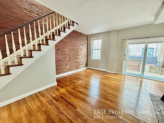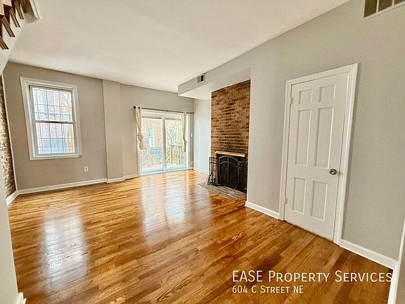Welcome to 604 C Street NE, in the heart of Capitol Hill just steps from Stanton Park! This gorgeous two-bedroom rowhome has been recently refreshed throughout and is just awaiting your own personal touches. The unbeatable location, great layout and private rear patio make this the perfect place to call your next home! Home Features: Original hardwood flooring throughout was just completed refinished Beautiful exposed brick throughout the home Spacious and light-filled living room with decorative fireplace Deck off of living room leads down to the private rear patio, perfect for entertaining! Kitchen with gas range and room for a small table Powder room on main level Upstairs leads to two good sized bedrooms on opposite sides of the home Full bathroom in upstairs hallway Washer/Dryer in unit Parking: Street parking. Utilities: Tenants are responsible for all utilities (gas, water, electric). Lease Terms: Available immediately. Minimum 12 month lease. Application fee is $35 and includes a credit check. Pets considered on a case-by-case basis with an additional $50/month pet fee (per each pet). Security deposit equal to one month's rent due upon lease signing. Location: Sitting right off of Stanton Park in Capitol Hill, there may not be a better location in the city. A quick walk to Eastern Market with tons of restaurants/shops along with the Eastern Market Metro Station. Also convenient to the Capitol including the Hart and Russell buildings and Union Station as well.