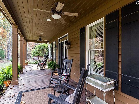 Gorgeous Low Country style 3 bed/2.5 bath home on 21 wooded acres with paddocks, 3 stall barn and efficiency apartment. Heart pine flooring and crown molding throughout, spacious, open plan kitchen/dining area/family room, large windows overlooking rear of property. Pine cabinetry, granite countertops, counter cooktop/built-in oven, pantry in kitchen, with stairs to attic/unfinished bonus room (plumbed for bath). Great room features masonry floor-to-ceiling wood burning fireplace, vaulted ceiling, entertainment center and French doors out to patio. Tray ceiling, recessed lighting in master bedroom, with jacuzzi tub, tiled floor, separate tiled shower, walk-in closet. Bedrooms 2 & 3 share bathroom with tiled flooring/bathtub. Laundry room and separate utility room with ceramic tiled flooring and utility sinks. Horse barn features 3 stalls with tackroom and wash stall, connecting to 2 BR/1BA efficiency apartment - high ceilings, tiled floor, open plan great room/kitchen. Additional storage buildings on property. Long driveway through trees with black 3-board fencing enclosing multiple paddocks.
