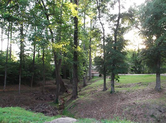 Tucked away in the deep shade! Screened porch and deck overlook the creek out back. Great room with wood burning fireplace, 3 bedrooms, 2 baths, theater, game room and safe room in the basement, double garage and 40x40 shop. Lot is approx. one and a half acres. Call Kay Beckett!