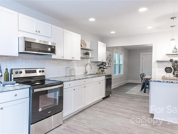 Over 2000 square feet, fully renovated, dual entries, in excellent Kannapolis location. Convenient to I-85 and downtown Kannapolis this 3 bedroom, 2 bath home features a large primary suite with it's own entrance. Two other large bedrooms, an office, dining room, mud room, and unfinished basement/workshop. Two carports, pet friendly fenced in back yard, and plenty of space for entertaining on almost a half acre. Custom details throughout the house including a drop zone, full tile shower, blue tooth lighting/exhaust fan in primary bath, stainless steel appliances, and tons of recessed lighting. Incredible curb appeal with board and batten siding on the front & sides, beautiful landscaping and more!