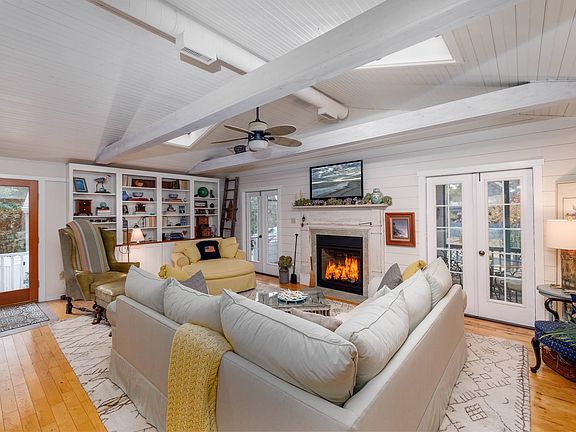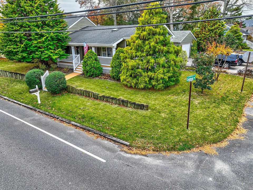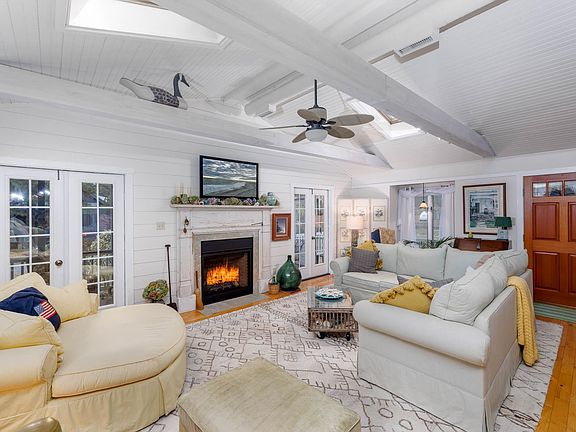 This sprawling three-bedroom, two-bathroom rancher is located on a bay block in Townbank. Situated on a corner lot, this home has been extremely well-maintained and expanded. Enter the front door into the open floor plan of the living room, dining area and kitchen. The living room boasts exposed beams, vaulted ceilings with skylights, a gas fireplace, built-in bookshelves and radiant heated hardwood floors. The dining area can accommodate a large dining table and the kitchen is equipped with a gas stove, range, quartz counter-tops and peninsula counter for additional counter-top seating. The home offers a laundry room and a four seasons room which overlooks the hardscaped gardens and professionally landscaped yard. The three bedrooms each offer closet space and neutral paint colors. One bedroom includes an en-suite bathroom with a shower stall. Outside, the home offers both screened-in porches and open-air porches. There is a private outdoor shower with a vinyl enclosure and fencing around the entire backyard. There are also raised garden beds for growing vegetables and herbs and a detached 1.5 garage with floored attic space and a generator hook-up.