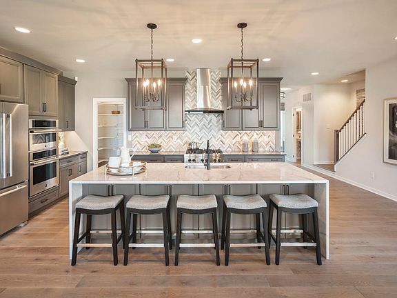 Well-designed modern touches. The Kline Elite's welcoming covered entry and inviting foyer open onto the expansive great room. The well-equipped kitchen is enhanced by a large center island with breakfast bar, plenty of counter and cabinet space, and gigantic walk-in pantry. The splendid primary bedroom suite is complete with a massive walk-in closet and spa-like primary bath with dual-sink vanity, large luxe shower with seat, and linen storage. Secondary bedrooms feature sizable closets, one with private full bath, two with shared full hall bath with separate dual-sink vanity area. Additional highlights include a convenient powder room and everyday entry, centrally located laundry, and additional storage.