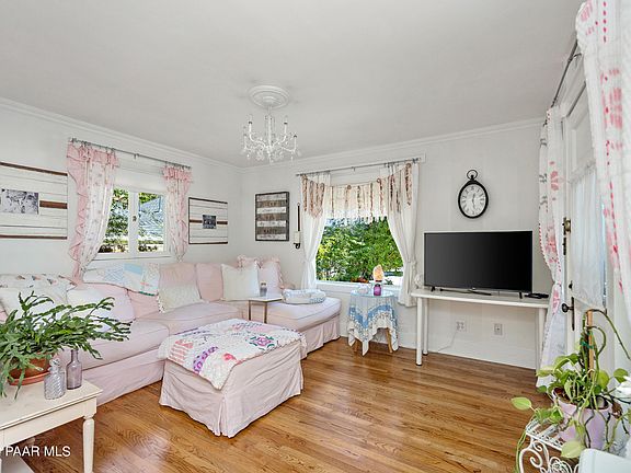 Built in 1905, this adorable cottage has all the character you'd expect. A path leads you to a storybook front porch that is a perfect place to enjoy your morning coffee. Inside the mostly white home has beautiful wood floors and touches of pastel florals throughout. The eat-in kitchen has butcher block counters, cooktop, and large windows to let in natural light. A full bath has a claw foot tub and all the unique features you'll find in a vintage home. Both the front and back yards are landscaped and include the native pinon pine. A detached 1 car garage rounds out all the wonderful things that this home has to offer. Walking distance to downtown Prescott.