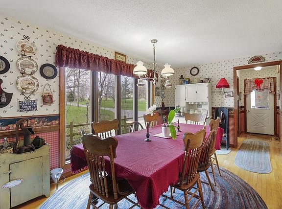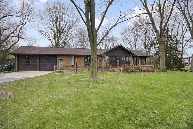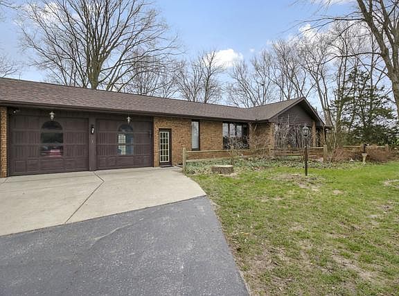 Beautiful setting on 3 wooded acres! Spacious ranch with walk out basement. Enjoy scenic views in this open floor plan home. Large kitchen opens to family room with hardwood floors. Lower level includes family room, 2 bedrooms, full bath, and walk out covered patio. Back yard runs to creek. New furnace 2020. 26 x 52 machine shed included. Gazebo stays.