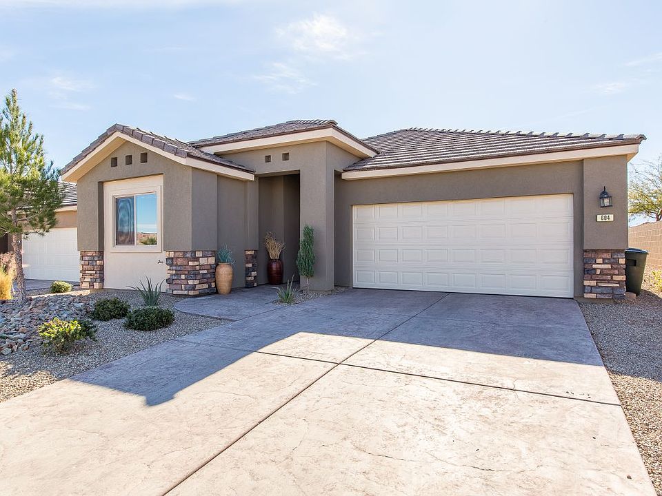 "Stone Haven" RESALE.....Great Opportunity to purchase a resale in this highly sought after new construction community. So many upgrades this owner has already paid for such as "elevated lot" ($6,000), French doors off living room and master bedroom ( $2800 ) Samsung Kitchen Appliances ($3,800), 70" Flat Screen TV ($1,200 ), 3 additional Flat Screen LED 46", 40" and 32" ($1,200), Reverse Osmosis ($1,100), Additional Tile added in living room and front bedroom ($4,000) , cooling fan in garage attic ($500) and. Water Softener . VALUE AFTER VALUE ! ! ! Unique Custom Granite Countertops in the kitchen set this home apart from the "standard builder granite". VIEWS OF THE MOUNTAINS can be seen from inside the home as well as enjoyed from this backyard . Spacious Covered Back Patio has plenty of room for BBQ and lots of outdoor furniture. Pre-Wired for Hot Tub off Master Bedroom Patio . LOOKS LIKE A NEW HOME.....Very well cared for home. Excellent condition.