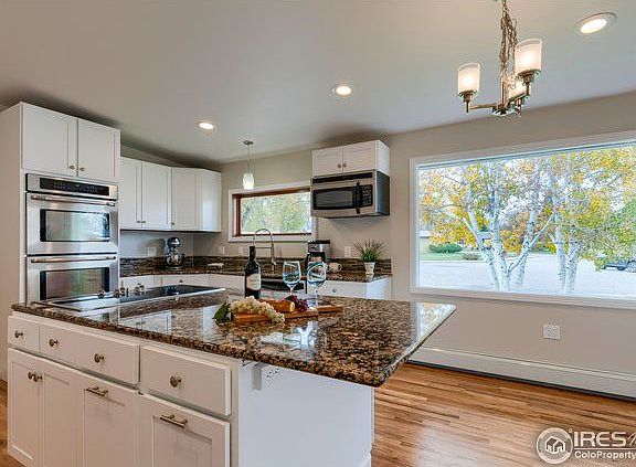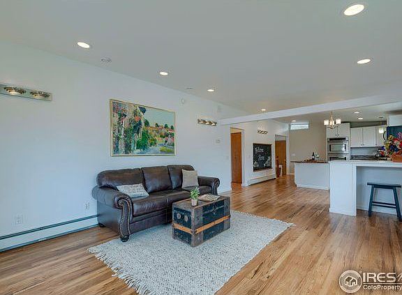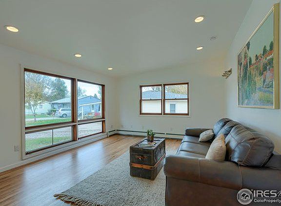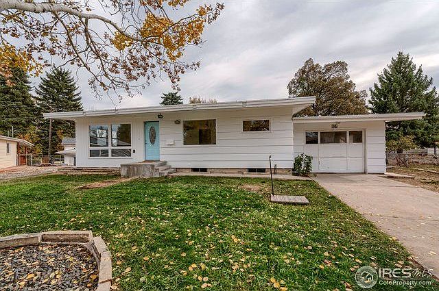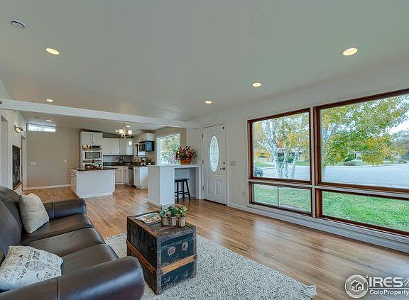 Lovely & spacious mid-century modern ranch in central Loveland. Recently updated top to bottom. Light & bright open floor plan & stately hardwood floors on main level. Large kitchen island w/ granite counters & SS appliances. Finished basement w/ theatre room & 4th non-conforming bdrm. Walk out basement access leads to huge 1/3 acre yard w/ Trex deck. Property access from 2 streets & 1800 sq ft of concrete parking pad in backyard, perfect for service trucks, RV's, etc. w/ no HOA!