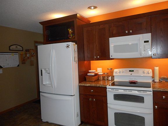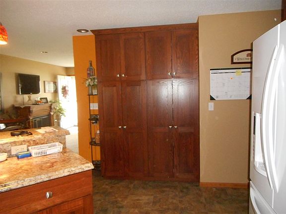 This Beautiful 3 Bedroom Home Offers An Open Floor Plan With New Kitchen And Center Island Open To Dining Area And Living Room. The Kitchen Has New Cabinets And Wonderful Double Pantry, All Cabinets Offer Role Outs, Including Fridge, Range, Built In Microwave And Dishwasher Plus Wonderful Accent Lighting. French Doors In The Dining Area To The Sunroom With Car Siding And Vaulted Ceiling. There Is A Guest Full Bath, Main Floor Laundry, Office, 3 Bedrooms Including One Master Bedroom And Master Bath. Enjoy The Double Granite Sinks And Large Shower. The Front Entry Is Tiled And Brick Accent Pillars And A New Side Deck Also. The Lower Level Offers A Large Rec Room, 3/4 Bath, Extra Areas For Spare Beds, Area With Countertop And Cabinets For Entertaining And A Large Store Room Plus Mechanics Room With A Large Storage Area. This Interior Has Been Professionally Painted Recently, New Flooring, Kitchen And So Much More. There Is A 4 Car Garage( Double Door In Front And Also Door In Rear With Cement Drive Out The Back Also), Finished Walls And Ceiling, Oak Cabinetry/ Countertops For Extra Storage Or Entertaining. Nice Cement Driveways And Outdoor Lighting. Included Also Is A Whole House Generator Hooked Up To Lp So When A Person Has A Power Outage You Will Have Power. Landscaping And Beautiful Trees Surround The Home.