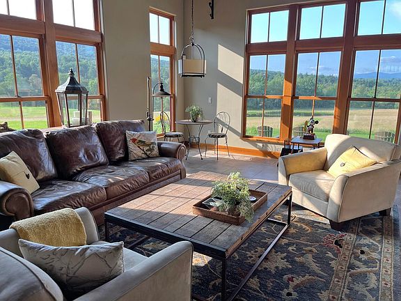This is an impeccably designed and constructed home in flawless condition in a coveted Waitsfield location. Situated on 20.2 acres of open meadowland the home site features, a heart shaped pond, exquisite views of mountain ranges, ski trails and surrounded by tranquil gardens. The warm, inviting interior offers many outstanding features, living room with vaulted ceiling, a light-filled kitchen to delight any chef, with a work space pantry, dining room with a stone wood fired pizza oven, high end fixtures throughout and gorgeous reclaimed wood finishes. First floor primary bedroom suite with jacuzzi tub & steam shower. Special features also include; outdoor shower just outside deck off the primary bedroom suite. a covered patio with a stone fireplace, spacious game room with fireplace over the two-car garage. This stunning home is ready for your immediate occupancy and enjoyment and includes almost all of the thoughtfully chosen furnishings.