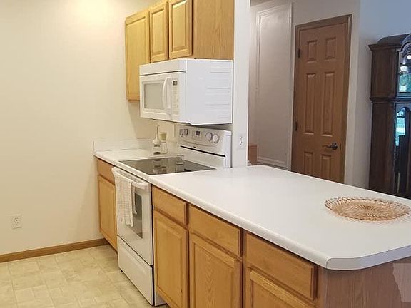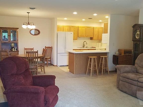 LOVELY, CLEAN, WELL CARED FOR CONDO WITH BEAUTIFUL POND VIEW!!! Situated on the east side of Prairie View Condominiums. This condo features an open concept LARGE living room, dining area, and kitchen. Also features 2 bedrooms, 2 bathrooms (one adjoins the master bedroom), lots of closet space including a HUGE walk-in master bedroom closet. Outside you will find a semi-private patio, a two car attached garage, and a community gazebo available for residents. Nice appliances included! Stove, refrigerator, dishwasher, microwave, washer, and dryer. Handicap accessible and NO stairs! HOA fee is $115.00 per month and includes lawn care, snow removal,and exterior repairs. Call for a showing today!!!