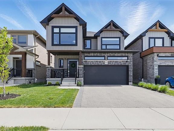 All Doon South homes are NOT created equal. The "Ridgeview" resale opportunity is going to make some new homeowner VERY happy! With almost 2400 sq. ft of luxury finishes you have to put this one on your list! Is your lifestyle a bit hectic & yard work is not high on your list? We have the ultimate professionally landscaped exterior with over $100,000 invested wisely in creating a backyard retreat with no maintenance. Step out from your dining room onto a "Timber Tech" composite deck. The rear yard is fully fenced and features 2 eight foot privacy screens, 3 patio areas, an attractive "faux" grass area & an irrigation system (front and back yards). Just wait until you see the Chef's delight kitchen finished in two tone (blue and white) cabinetry, a large centre island with microwave shelf, quartz countertops, a pantry closet, ceramic tile backsplash & an appliance package by the 6 burner gas stove top with a lower electric double oven! You can't help but notice the oversized sundrenched widows throughout the upper & main floor levels. Flooring choices on the main floor are a combination of ceramic tile (laundry, foyer and powder rooms) and engineered brushed maple hardwood in the Great room, kitchen and dining rooms! You will certainly enjoy the main floor laundry room that is finished with stackable washer & dryer and a unique, custom designed storage centre with an undermount sink. Head on upstairs for more surprises! 4 generous sized bedrooms including a Primary suite offering a 10' x 5'3" walk-in closet with organizer & a dream ensuite. 5 pieces including a deep oval soaker tub, a 5' x 3' glass shower, and a long quartz vanity with 2 undermount sinks. The windows in the front 2 bedrooms are a stunning 7'8" wide for maximum enjoyment. All bedrooms have double closets. The lower level awaits YOUR finishing ideas but on this level you will find a cold cellar, a high-efficiency furnace with air exchanger and a 3 piece bath rough-in