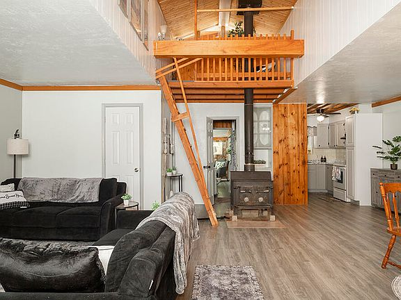 This home is warm and welcoming. Completely updated inside with open living space and skylights to bring in all that natural light, plus 2 lofts that are perfect for curling up and reading a book or for extra sleeping space. The sunporch is inviting to sit and sip your morning coffee. Outside you will enjoy a lovely wrap around porch, a storage room, a hot tub, an established garden area, and the most adorable outbuilding with loft that could be used for hobbies, guests, or a quiet get-away space. Make your appointment to view this home today.