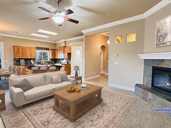 Perfectly situated on corner lot in the sought-after Highland Park neighborhood, you'll love this well-maintained 3-bed, 2-bath home offering an open-concept layout with high ceilings, a cozy fireplace, granite counters, and a large island. The spacious primary suite features a recently updated shower and a generous walk-in closet. Relax with friends under the full-length Alumawood-style patio cover in an easy-maintenance backyard, all while enjoying the surrounding mountain views and the refreshing creek-like sounds from the water fountain. The neighborhood park offers a playground, basketball court, soccer field, and covered picnic tables—perfect for gatherings. Conveniently located near the mall, Trader Joes, Hilltop Drive shopping and restaurants, and fast freeway access. All this with NO HOA fees!