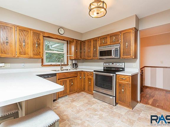 Charming, Meticulously Maintained Home On Over A ½ Acre Ultra Private Lot In Perfect Central Location! The sundrenched main level features a delightful kitchen w/ oodles of cabinets, great counterspace & convenient breakfast bar that opens to the spacious breakfast nook w/ sliders to the lovely private patio. Roomy & elegant formal dining w/ add'l access to the patio & new flooring plus an inviting, sun splashed living room w/ large picture window offering fabulous tranquil views of the private yard. Three sizeable beds on the main including the cozy master suite w/ private bath w/ new tile walk-in shower. Sprawling lower level hosts a great family room, large bonus room easily converted to a 4th bed & copious amounts of storage. Coveted 3 stall garage & enormous, lushly landscaped yard w/ tons of mature trees & great outdoor living space. New carpet on the main & freshly painted throughout. Fabulously located, walking distance to 3 schools & parks, & easy access to all of Sioux Falls!