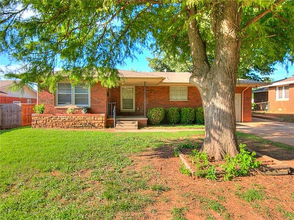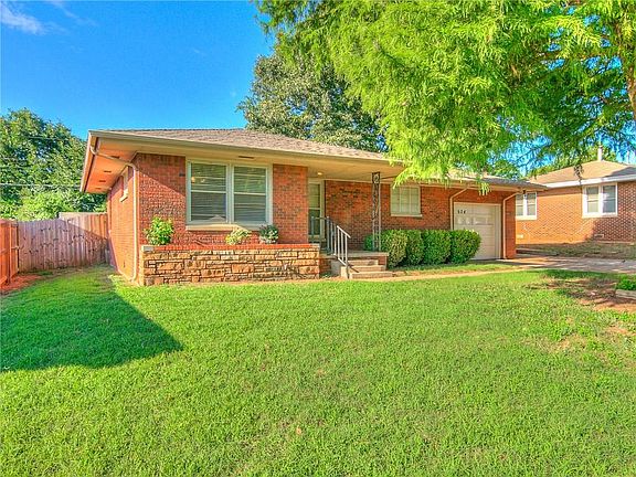 Cute home with lots of updates. Open floor plan between living room, dining space and kitchen. Original hardwood floors in dining and ceramic tile in kitchen & 2nd bathroom (bathroom tile being installed prior to closing and will match tile in kitchen). Since June, new carpet installed, freshly repainted interior, windows being professionally cleaned and kitchen appliances updated. The stove, microwave and dishwasher were replaced (in July), the refrigerator and washer/dryer are included, but are not warranted. The garage was converted and is a flexible space that would make a great den/man cave and includes a 3/4 bath with shower and laundry room. The fenced backyard has an open patio and brick BBQ pit. Extra nice feature - 2 car drive for more offstreet parking. The home is conveniently located near a Wal-Mart Neighborhood Grocery, Walgreens, Post Office, Community Center, a neighborhood park, and is within 2 miles of Tinker AFB. Professional photos coming soon!