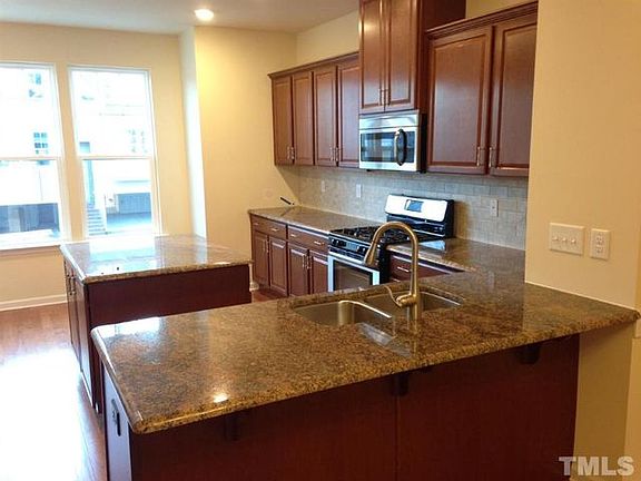 Wonderful kitchen in the ALDER home, EAT-IN space, center work ISLAND, WALK-IN PANTRY. Upgraded cabinetry GLASS DOORS, ROLL-OUT TRAYS, granite and SS appliances. Gorgeous HARDWOODS main floor. Master suite with SITTING AREA, Granite and Tile surrounds in bath. Rec room with walk-in shower in full bath on ground floor. Great STORAGE in the garage!! Neighborhood walking trail accesses Apex Park and Lake Pine. Great location off Cary Parkway.