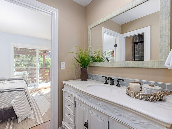 Bright 2 Bedroom, 1 Bath three year old ADU built in 2019 offers vaulted ceilings, upscale finishes, wood floors, Bosch Dishwasher, and a Thermawood covered deck overlooking a creek/pond. The lot is dotted with fig, walnut, persimmon and apricot trees. Experience tranquil country living while less than 1 mile from the El Cerro freeway ramp. This beautiful ADU is part of a 1.25 acre parcel on the "El Pintado Loop" and is surrounded by large multi million dollar homes Owner will pay for PG&E and water. No smokers