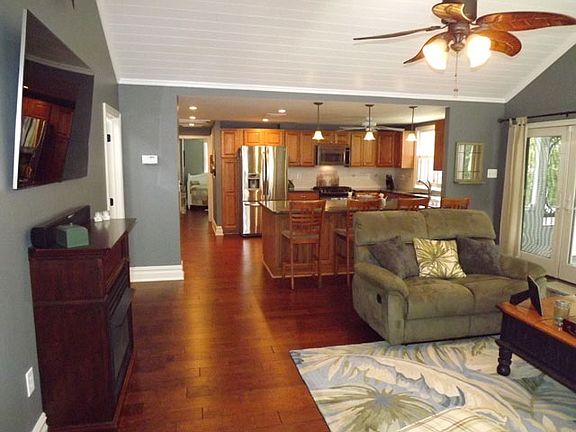 Custom ranch home close to the Bay! HGTV could use this home as a model with the many modern upgrades. An open concept kitchen/living area complete with shiplap cathedral ceilings highlight this home's interior. Some of the numerous features of this house are: Hand scraped hardwood floors, custom trim and moldings, gas fireplace, granite countertops, new windows and doors, soft close cabinets, on demand hot water heater, stainless steel appliances and much more! French doors lead to a large screened in porch off of the family room. The main bathroom is finished off like a high end hotel with tumbled stone and marble, heated floor, dual brushed bronze shower heads, and frameless glass shower doors. A bonus fourth bedroom/utility room is perfect for guests. Relax on the custom porch swing, enjoy the brick paver patio and outdoor stone fire place year round. The backyard feels like your own private resort!
