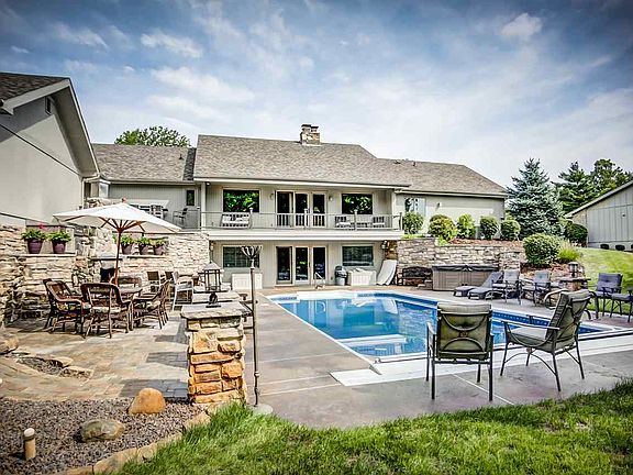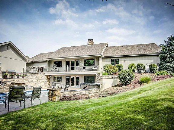This home is an outdoor lovers paradise. The home has been thoroughly updated with newer kitchen cabinets and appliances. The walkout basement has a 16 foot wet bar complete with built in coolers, ice maker and dishwasher. Step out side to the beautiful built in heated pool with automatic cover. The pool is flanked by a built in stone sit at bar with a stone and stainless steel fireplace. A few steps up leads to a built in outdoor kitchen featuring a Viking grill, a searing station, sinks and refrigerator. A stairway leads to a lower tier in the back yard that has a beach volleyball court and fire pit. There is also a shed with electricity run to it. The home also features a two car detached heated garage with walk up attic storage, this garage is adjacent to the attached two car garage.