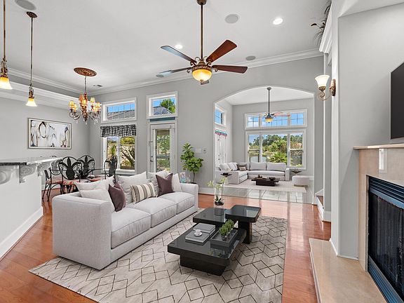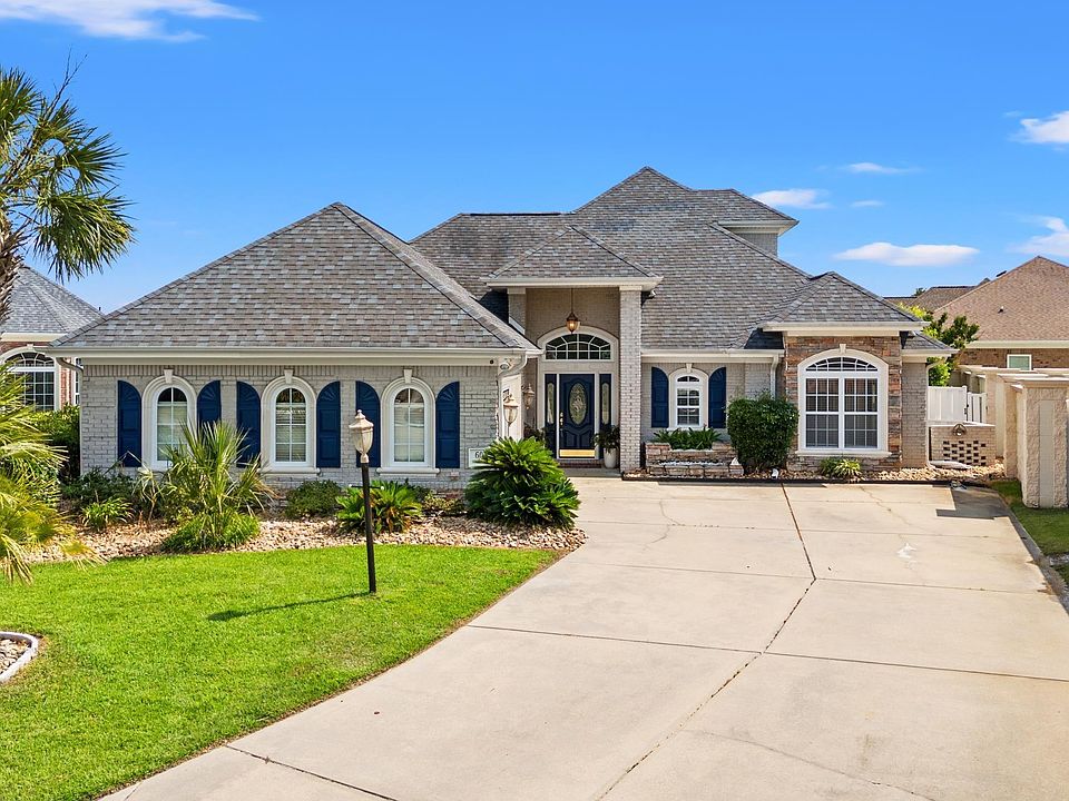 Experience the epitome of luxury living in this elegant, well-maintained lakefront home, nestled on a quiet cul-de-sac within the all-brick gated community of Waterfall. Located just 8 minutes from North Myrtle Beach and 1 mile from SC Route 31. The exclusive community, built around an 8.5-acre stocked lake, features a clubhouse with a full kitchen, bar, fitness room, lounge area with a TV, and pool. Enjoy fishing, paddle boarding, or relaxing on the lake with non-gasoline boats. This beautifully decorated home includes high ceilings, crown molding in the living areas, granite countertops, and new stainless steel kitchen appliances. The interior includes a Carolina room with lake views, an upstairs balcony off of the 4th bedroom or bonus room, a backyard deck, and a two-car garage with built-in cabinets. The versatile 4-bedroom layout includes a flexible upstairs room that can serve as a bedroom, TV room, or office. The property also features modern conveniences such as, surround sound and intercom.