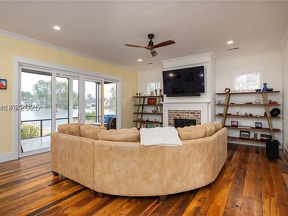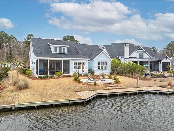 There IS something about the water! Sooth your senses with nature on this waterfront 3BR/3BA Charmer with Private Dock and Long Lake Views. This custom crafted waterfront home, professionally built by Shoreline Construction offers stunning, long-range views of Hampton Lake and a private dock, perfect for tying up your pontoon boat, kayak or skiff. This 200+ acre lake provides opportunities to fish, sail or motor to the private community dock and dine at Backwater Bill's Restaurant. Thoughtfully designed and custom built, it features reclaimed hardwood floors, granite countertops, stainless steel appliances, and a dedicated home office. The kitchen includes an oversized pantry and ample cabinetry, blending style and function. A cozy gas fireplace adds ambiance to the living space, while foam insulation enhances energy efficiency throughout the home. The walk-in attic provides convenient extensive storage. Your primary suite is located on the main floor and includes a walk-in closet with convenient laundry room. A second bedroom with a full bath is also on the first floor, ideal for guests or multi-generational living. Upstairs, you'll find the third bedroom, a full bath, and a 166 sq ft bonus room, perfect for a media room, home gym, or possible 4th bedroom. Additional highlights include a garage with A/C unit, epoxy-finished floors, and a 220V-50A outlet ready for EV charging. This home is a rare combination of charm, comfort, and functionality, perfectly positioned to make the most of Hampton Lake's extensive amenities. Hampton Lake features full fitness center and spa, Lazy River pool, Crystal Lake for swimming, Pickleball, Tennis, Basketball and Bocce courts and popular Beer Garden for socializing. Numerous Clubs provide many opportunities to enjoy the Lake Lifestyle including access to many local golf courses with your neighbors.